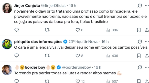 Enquanto alguns seguidores publicaram mensagens de apoio à nova empreitada, outros utilizaram o humor para comentar a versatilidade do currículo do famoso. O foco total nos treinos de boxe indica que o ex-motorista de aplicativo pretende levar a sério o desafio esportivo.
