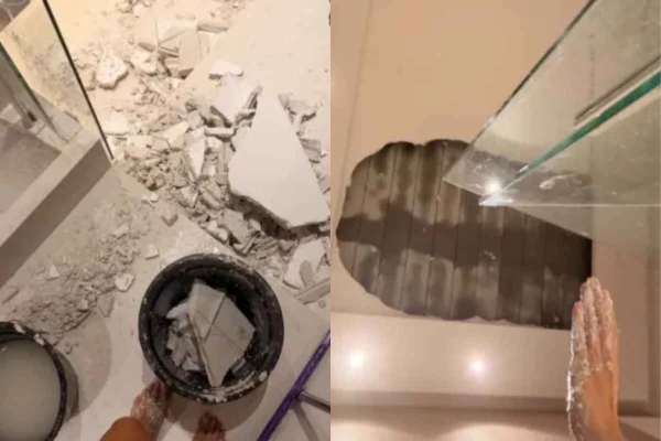 Amanda Kimberlly publica registros dos danos em sua casa após o teto desabar