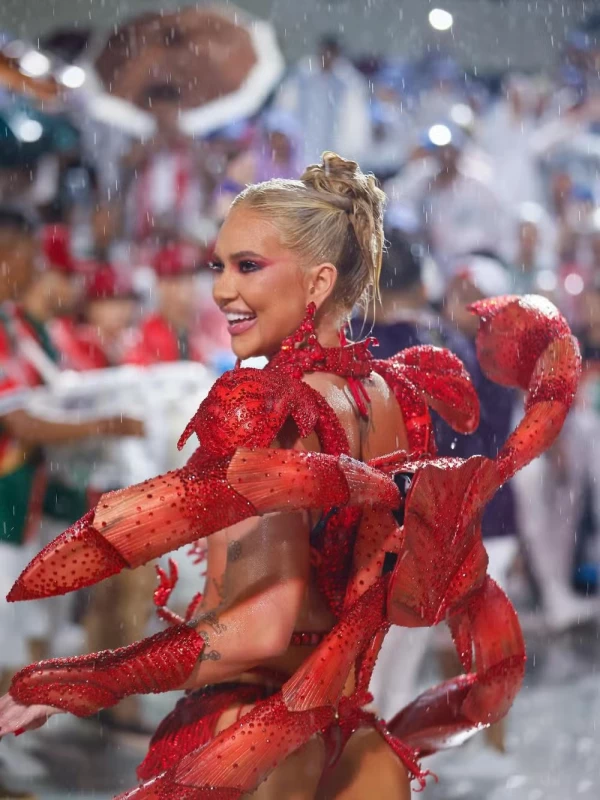 A empresária detalhou o medo de sofrer um acidente grave diante do público. “Existe um vídeo mostrando como o caranguejo era para ser de verdade. Só que choveu e, se eu ligasse o equipamento, daria curto-circuito em mim. Por isso não acendemos. Mas vou mostrar como deveria ter sido. A chuva estragou tudo”, lamentou ela, explicando que optou pela segurança em detrimento do espetáculo visual planejado para a alegoria.
