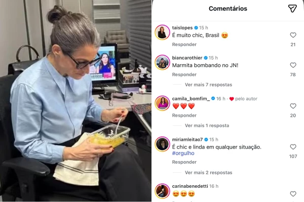 Nos comentários, profissionais da comunicação e fãs destacaram a elegância de Renata mesmo em um momento simples. A jornalista Miriam Leitão elogiou a colega publicamente, enquanto outros internautas ressaltaram a naturalidade da cena e detalhes do ambiente de trabalho. A interação reforçou a proximidade do público com os apresentadores do noticiário.