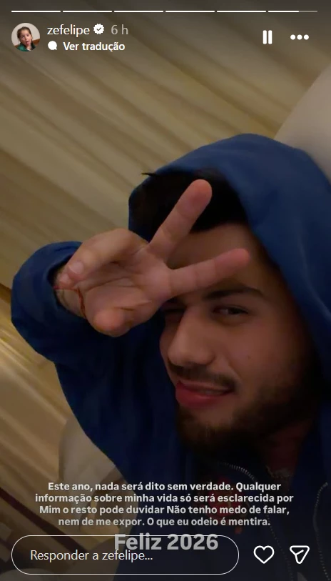 Zé Felipe teria iniciado 2026 disposto a adotar uma postura mais firme diante dos rumores envolvendo sua vida pessoal, especialmente após o fim do breve relacionamento com Ana Castela. De acordo com publicações feitas pelo próprio cantor nas redes sociais, o sertanejo sinalizou que pretende ser a única fonte para esclarecimentos sobre assuntos íntimos, numa tentativa de conter especulações que ganharam força nos últimos dias.